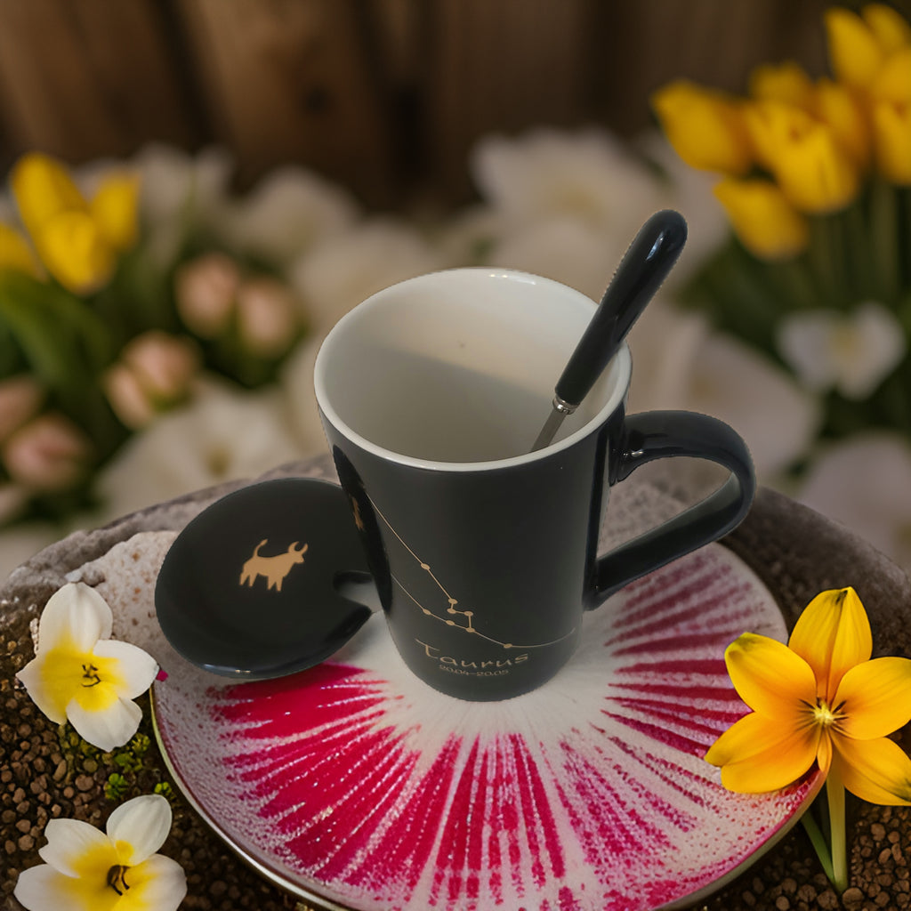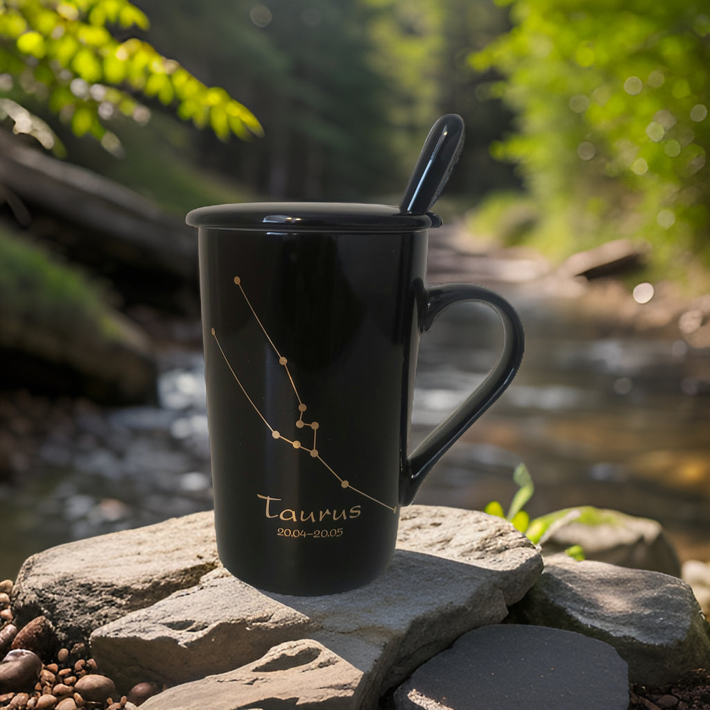 Discover the stars within your cup with the Nagasol Zodiac Mug. This 420mL mug celebrates the 12 signs of the zodiac, each adorned with its unique constellation. Mugs comes with a matching spoon and a whimsical mug top cover. Available in both white and black, these mugs make are perfect gift for  anyone who loves a celestial touch to their morning beverage. Whether you're sipping your favorite beverage at home or on-the-go, the Nagasol Zodiac Mug adds a touch of personality and fun to your day. Embrace your star sign and enjoy the cosmic vibes with Nagasol.